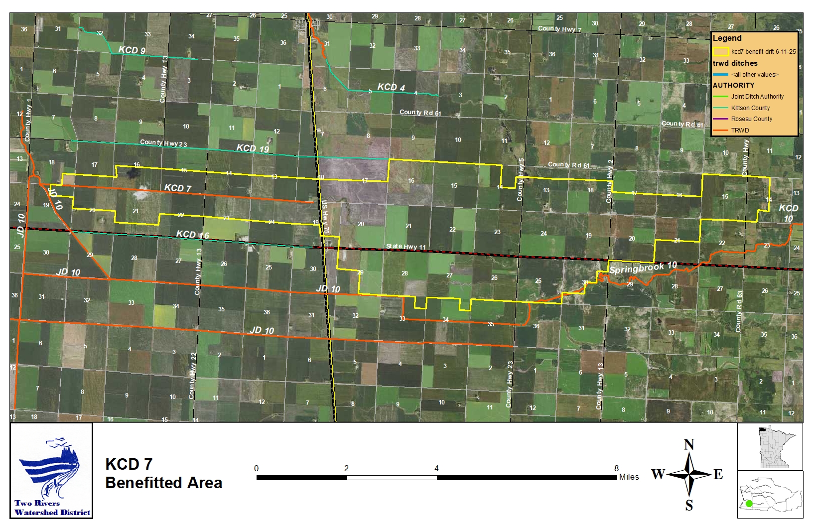 A 6.5 mile long drainage ditch built in the early 1900’s, The ditch begins at the Burlington Northern railroad tracks just northwest of the City of Donaldson and flows straight west to outlet into Judicial Ditch #10, which in turn outlets into a natural coulee, which outlets into the Red River of the North.